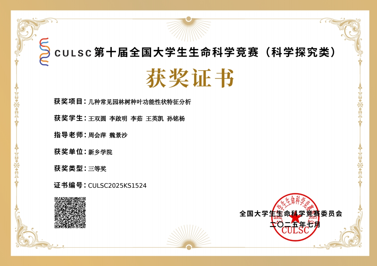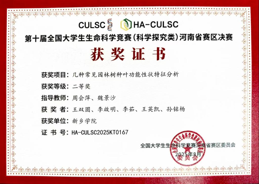 2025年7月13日,第十届全国大学生生命科学竞赛(科学探究类)河南赛区决赛于豫北医学院圆满落幕,本次决赛采取省赛国赛二合一的方式。我院学生在此次竞赛中荣获国家级三等奖1项,此外,还获得该赛事河南省二等奖1项,取得优异成绩。