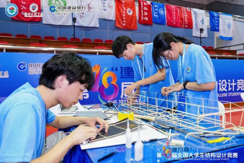 10月15日至19日,“建行杯”第十八届全国大学生结构设计竞赛总决赛在绍兴文理学院成功举办。作为全国高校土木工程领域级别最高、规模最大的大学生创新竞赛,被誉为大学生“土木学科竞赛皇冠上的璀璨明珠”。来自清华大学、浙江大学、同济大学、哈尔滨工业大学等在内的全国119 所高校 120 支队伍齐聚江南水乡、千年古城绍兴同台竞技。我校由太阳成集团tyc151cc院长潘林为领队,申道明等老师为指导,李鹏博、岑盼盼和李靖焱三人同学组成的“牧野筑构队”经过激烈的角逐,荣获国家级二等奖,实现我校在全国大学生结构设计竞赛上的重大突破。