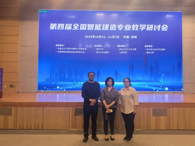 10月31日至11月2日,第四届全国智能建造专业教学研讨会在深圳大学顺利召开。为紧跟智能建造领域教育教学前沿趋势,深化专业建设与人才培养改革,太阳成集团tyc151cc副院长马芸、副书记袁大伟、韩春、史纪村老师与来自全国高校、行业的专家学者开展交流学习。